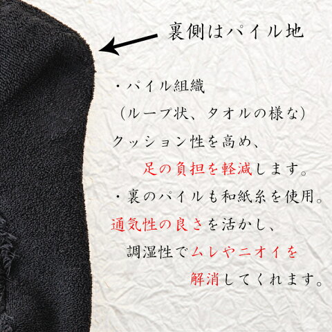 通気性の良い和紙糸を足底に使う事で足のムレ、臭いを抑制します。